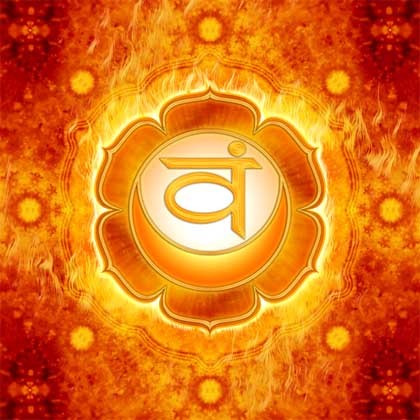Su símbolo hindú es un loto de seis pétalos que contiene un círculo blanco, y que simboliza el elemento agua. De ahí que este órgano este relacionado con la vejiga, el sistema circulatorio y los órganos sexuales y reproductores.